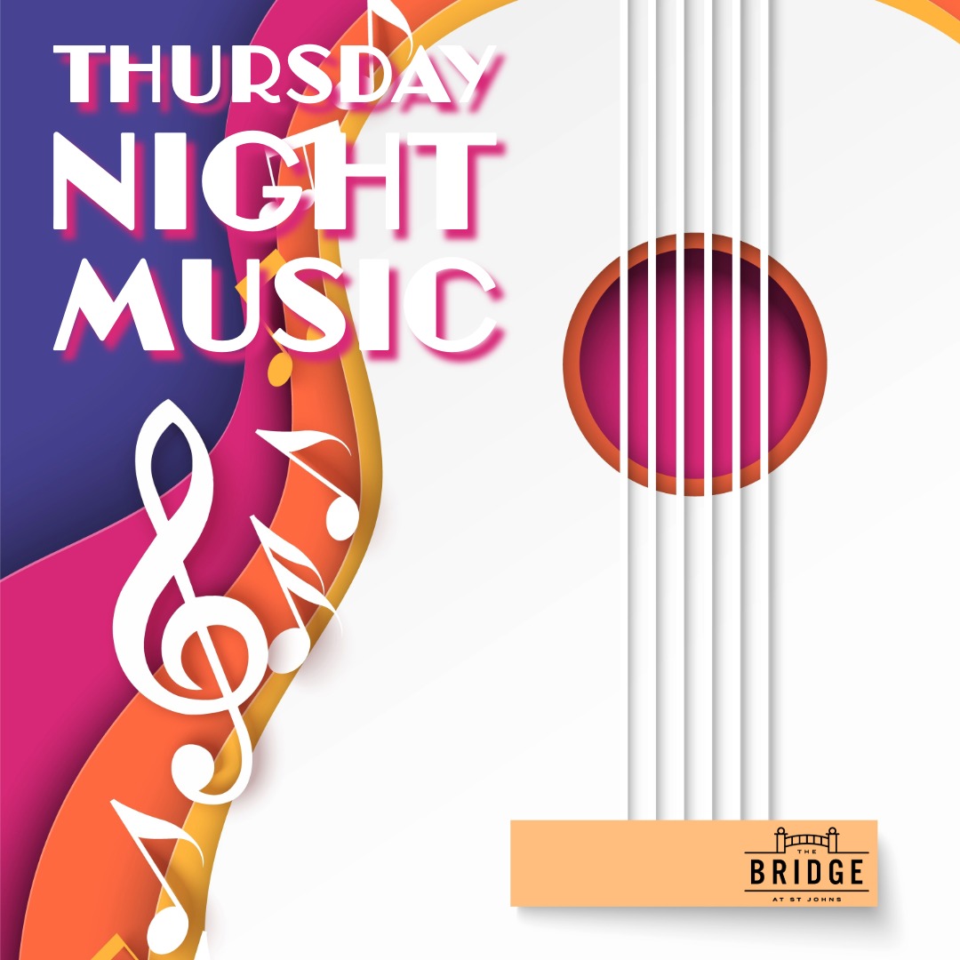 Unwind on The Bridge Patio! Free live music, flavorful food, drinks, and breathtaking sunsets every Thursday night.