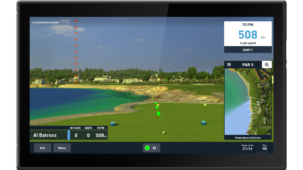 Take aim for the pin as consistently close approach shots will lead to victory. Play on a virtual golf course and utilizes Toptracer technology to track each shot’s trajectory and landing spot in real-time.