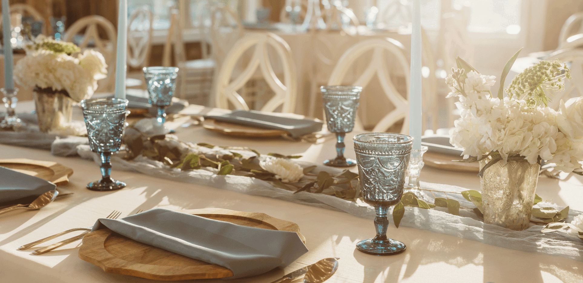 A: Besides the breathtaking back drop, your wedding with us starts with conveniently packaged options for easy booking, but each beautifully detailed with options for customizing for your unique event! All packages include a dedicated event planner, ceremony and reception, tables, chairs, linens, delicious food and drink, setup and cleanup.